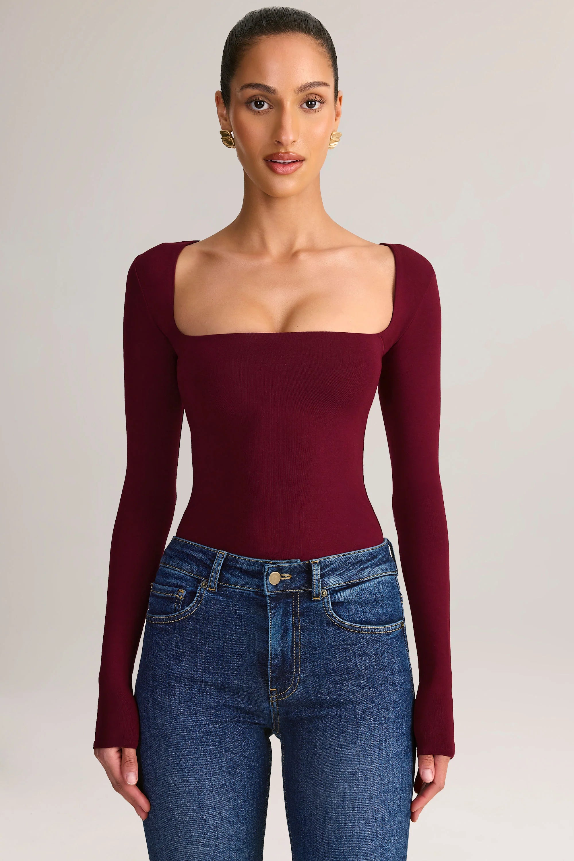 Modal Square-Neck Long-Sleeve Top in Wine